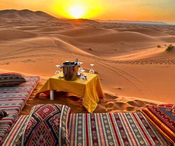 - Two Desert Nights in Merzouga: Experience complete Saharan immersion with camel treks, sunrises, sunsets, desert excursions, and starlit camping.