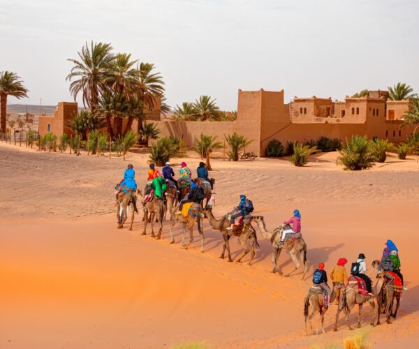 Enjoy the majestic landscape of the Sahara in all its glory on a 6-day tour from Agadir to the desert via Marrakech that showcases Morocco’s most spectacular destinations. This comprehensive 6-day tour from Agadir to the desert via Marrakech takes you through the endless panoramic desert views, vibrant Marrakech medina, ancient kasbahs, dramatic gorges, and golden dunes. Your 6-day tour from Agadir to the desert via Marrakech delivers unforgettable experiences including the silent starry nights after desert music around the fire, the magic of colors at dawn and sunset in the dunes, and the freedom to follow your mood throughout this extraordinary journey.
