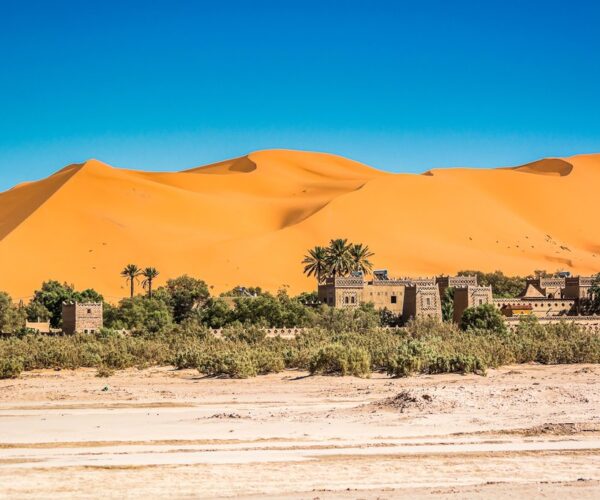 The desert component of your 6-day tour from Tangier to Marrakech features two full nights in Merzouga at the magnificent Erg Chebbi dunes. These towering sand formations reach heights up to 150 meters and create some of Morocco’s most spectacular desert scenery. The extended desert stay on the 6-day tour from Tangier to Marrakech ensures you experience multiple sunrises and sunsets, camel treks, 4×4 excursions to Khamlia village, visits to nomadic families, and authentic Berber hospitality.