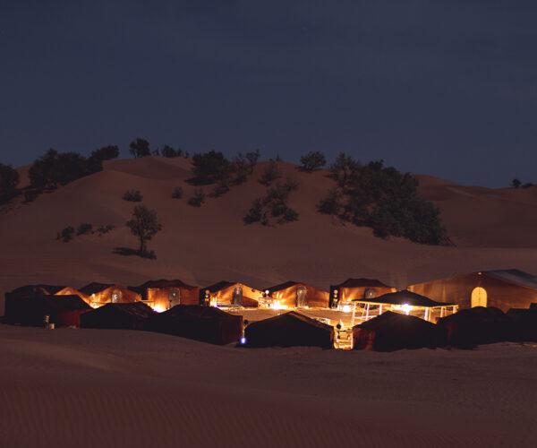 The cultural richness of the Morocco tours is extraordinary. You’ll visit Taliouine to learn about saffron production and taste energizing saffron tea, explore Foum Zguid Berber village with its valley of palm trees, visit M’hamid village on the border with Algeria, discover Wadi Draa valley, explore Zagora “the city of caravans,” visit Ouarzazate with its famous Atlas film studios, and tour the UNESCO-listed Kasbah of Ait Ben-Haddou. These Morocco tours provide genuine insights into Moroccan culture enhanced by local animation around campfires with traditional music and singing.